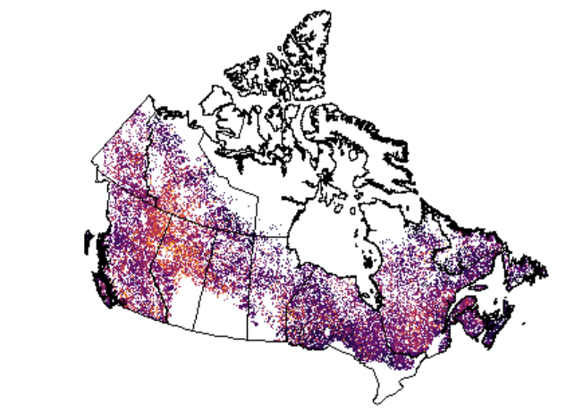 The raster maps depict a suite of forest attributes in 2001* and 2011 at 250 m by 250 m spatial resolution. The maps were produced using the k nearest neighbours method applied to MODIS imagery and trained from National Forest Inventory photo plot data. For detailed information about map production methods please refer to Beaudoin et al. (2018) "Tracking forest attributes across Canada between 2001 and 2011 using the k nearest neighbours mapping approach applied to MODIS imagery." Canadian Journal of Forest Research 48, 85-93. https://cfs.nrcan.gc.ca/publications?id=38979 The map datasets may be downloaded from https://nfi.nfis.org/downloads/nfi_knn2011.zip or https://open.canada.ca/data/en/dataset/ec9e2659-1c29-4ddb-87a2-6aced147a990 * Note: the forest composition (leading tree genus) map depicts forest attributes in 2001. How can this data be used? The resolution and accuracy of these map products are best suited for strategic-level forest reporting and informing policy and decision making at regional to national scales. As these maps also offer a coherent set of quantitative values for a large suite of forest attributes, they can be used as baseline information for modelling and in calculations such as merchantable forest volume or percentage of tree species. It is also possible to overlay these maps with other maps produced on the same pixel grid to make assessments of disturbance impacts, such as fire and harvests.